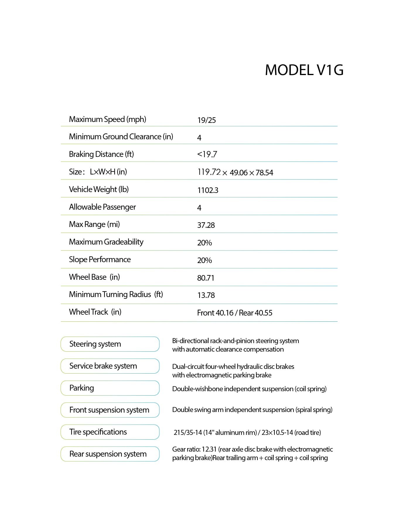 MODEL V1G – Four-Seater Golf Cart